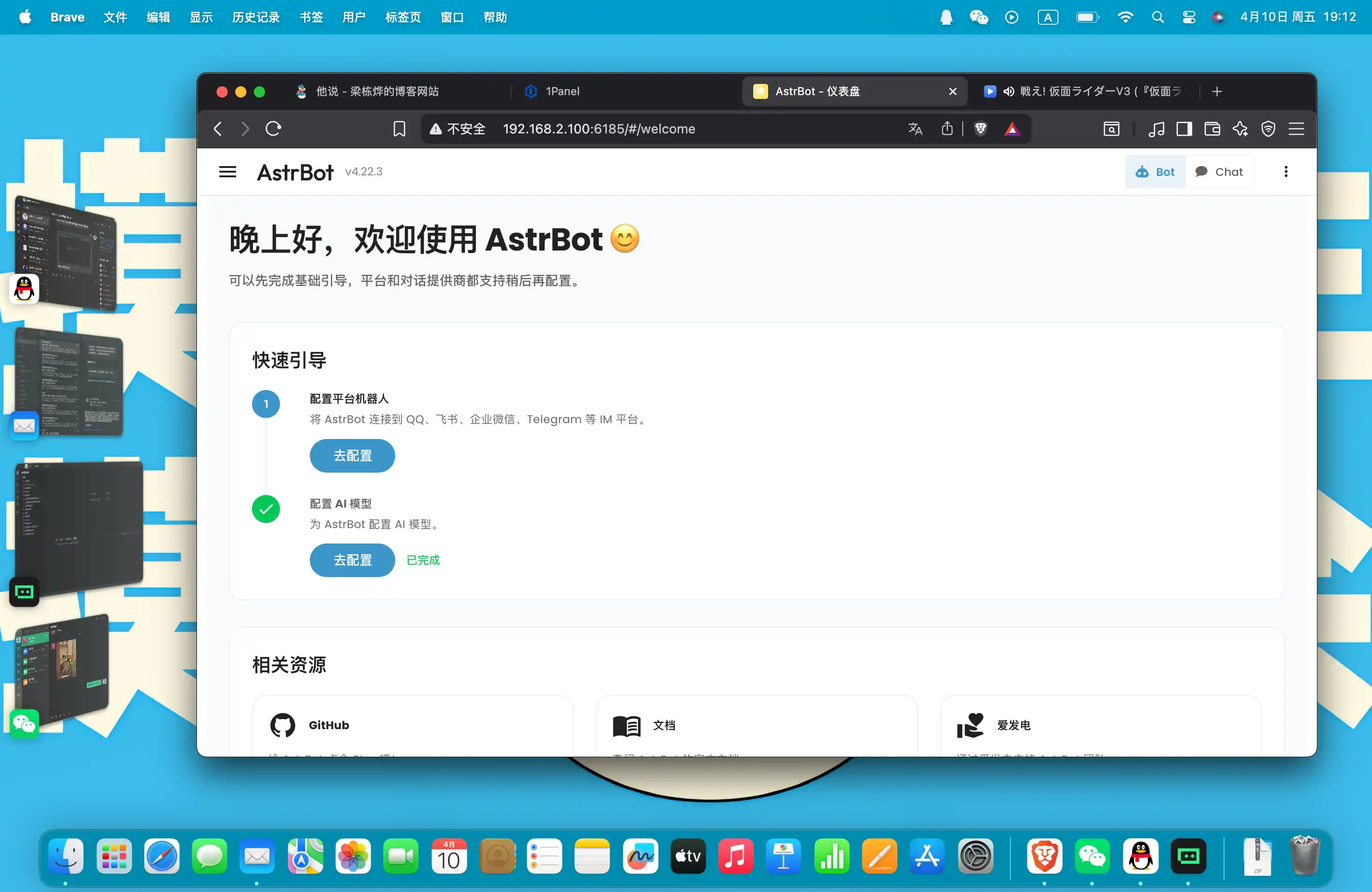 我昨天不是带大家玩过 OpenClaw 吗?在那之后,我的朋友给我介绍了一款叫作 AstrBot 的机器人软件。其实在他说之前,我了解过这个项目,是中国人做的,这个项目本来只是个把大语言模型接入聊天软件活跃气氛的工具。在那之后随着不断迭代的版本更新,现在加入了 Agent 功能,可以看作是 OpenClaw 的同类产品了。