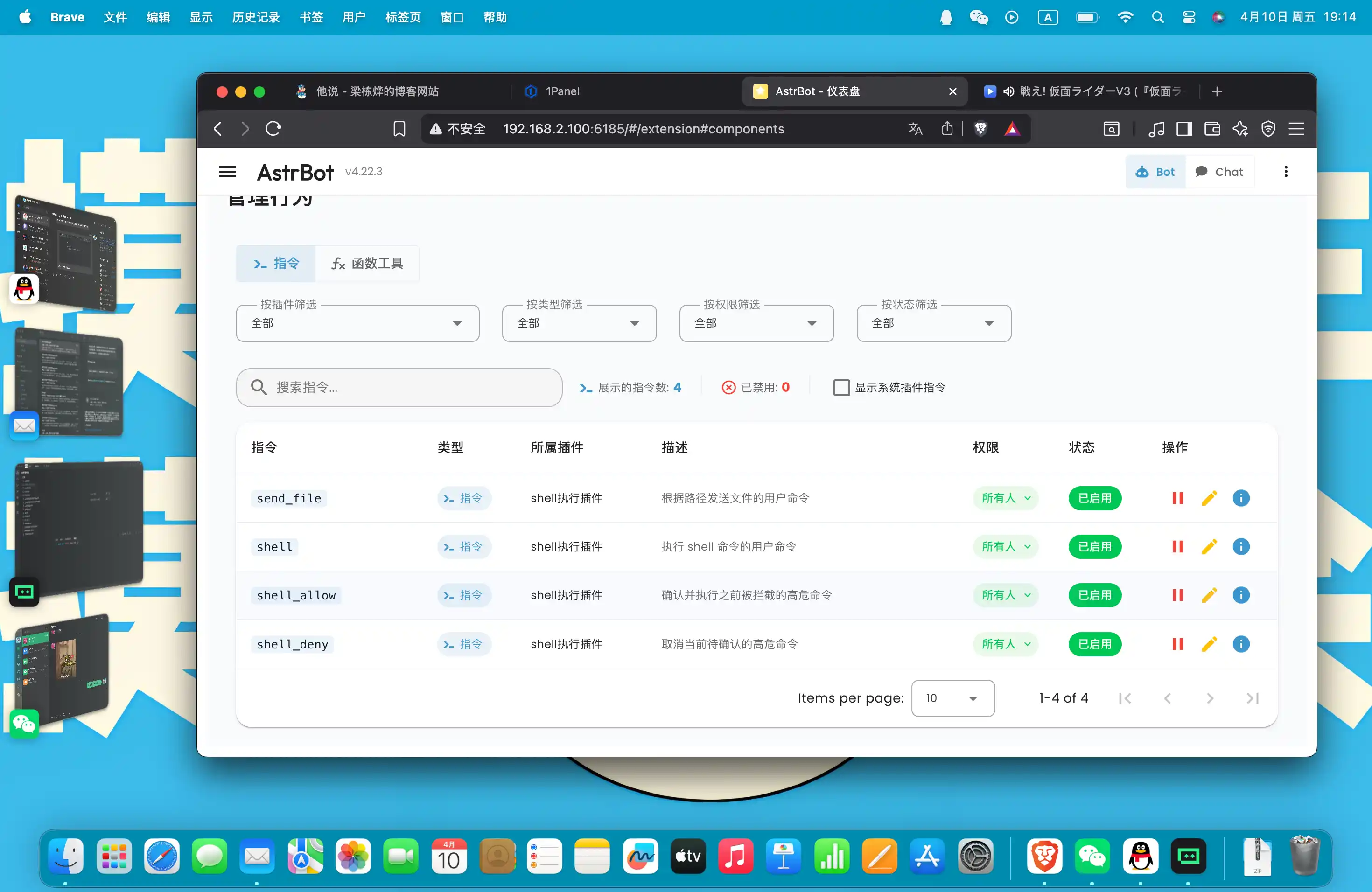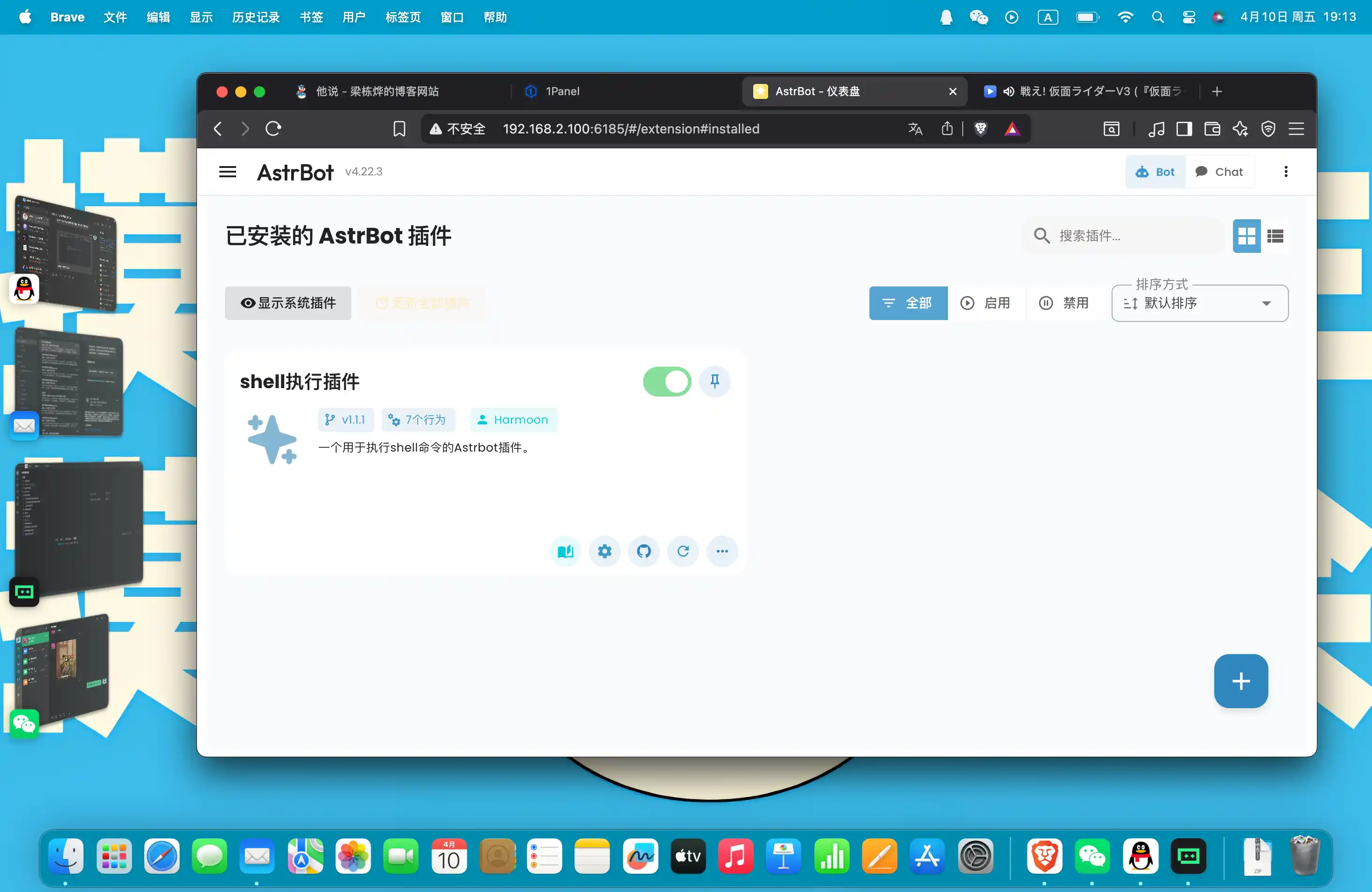 啊哈,快看我找到了什么,是插件系统!这玩意居然支持插件,这意味着我可以安装一个 Shell 运行插件,这下 AstrBot 就有手脚了。当然啊,我也不确定这个东西到底能不能运行。但是,我记得某位狐狸说过:“相信吧,相信 AstrBot 是不需要理由的。”,于是我鼓足了干劲,决定继续尝试,看看到底行不行。