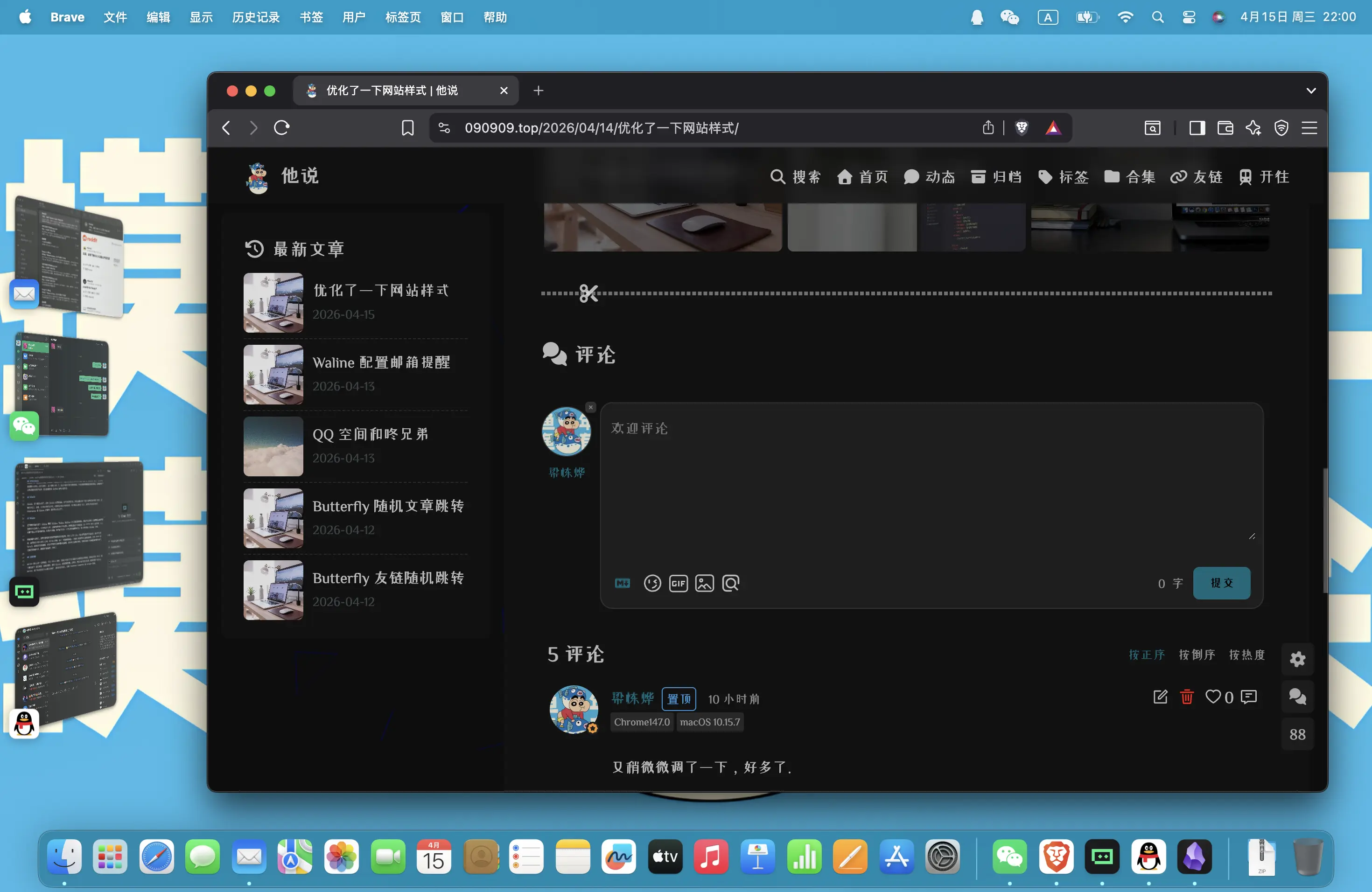 我是这样子完成创作流程的——写完一篇文章后,把它上传到博客网站(不如说是代码仓库),打开那台二手 Mac 的录屏功能,对着这个网站页面口吃地读稿。没啥适配剪辑,纯粹就是读稿,你能想象吗?这是 2025 年的创作方式,怕不是 2015 年吧!