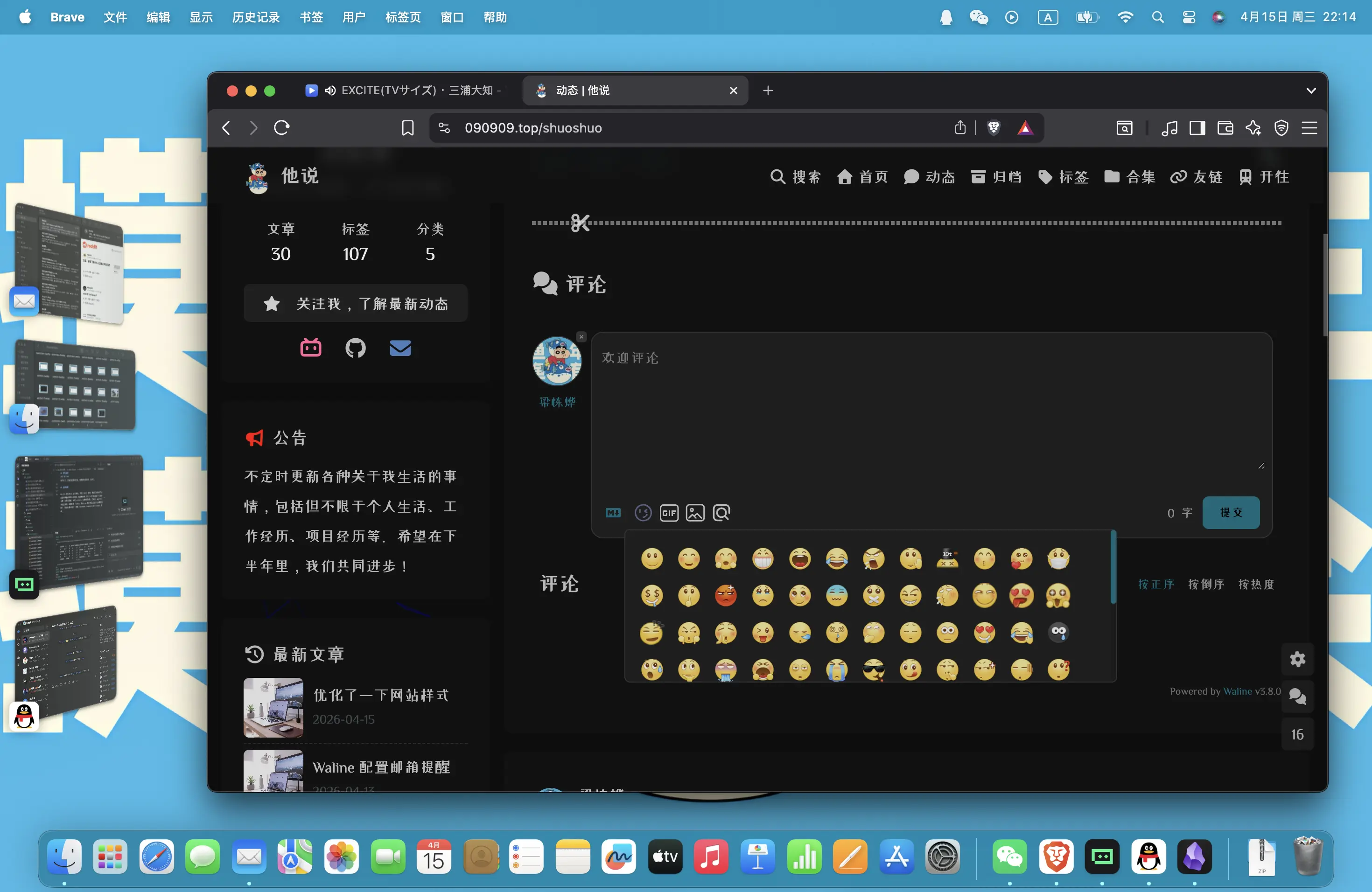 Waline 默认支持一些表情包,不是 EMOJI 那种,是真正的流行于社交媒体平台那种贴片表情包,我真是受够 EMOJI 那个黄豆脸了!综合来看,如果求简单,就用 Giscus;如果想要完整、正常的,有后台的评论区系统,就去折腾 Twikoo、Waline。剩下的反而没什么必要去折腾了,除非你是外国人,折腾 Facebook Comments 和 Disquz 那种。